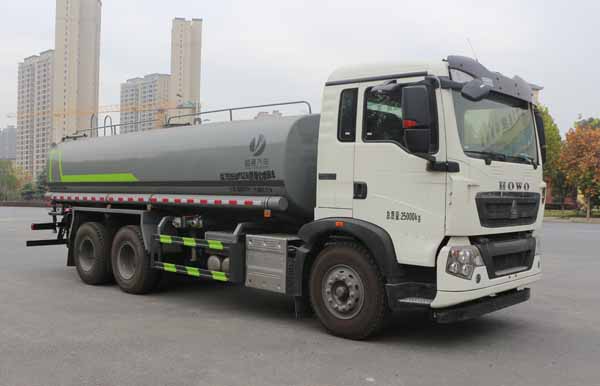 該車主要用于城鄉園林綠化噴灑;主要裝置為罐體及噴灑裝置;隨底盤選裝駕駛室,選裝噴霧裝置樣式;罐體總容積:14.81立方米;罐體有效容積:14.1立方米;罐體外形尺寸(×長軸×短軸)(mm):6800×2390×1620;側、后防護材料均為:Q235,連接方式均為:螺栓連接,后部防護截面尺寸(mm):120×50,后部防護離地高度(mm):480;ABS系統控制器生產企業/型號為威伯科(上海)管理有限公司/4460046300;選裝EBS,EBS系統控制器生產企業/型號為威伯科(上海)管理有限公司/EBS3;選裝限速裝置,最高車速(km/h)89.整車長度/軸距/后懸對應關系(mm):10150(10580)/4300+1350/3070(3000,3500,3430),10150(10580)/4600+1350/2770(2700,3200,3130).