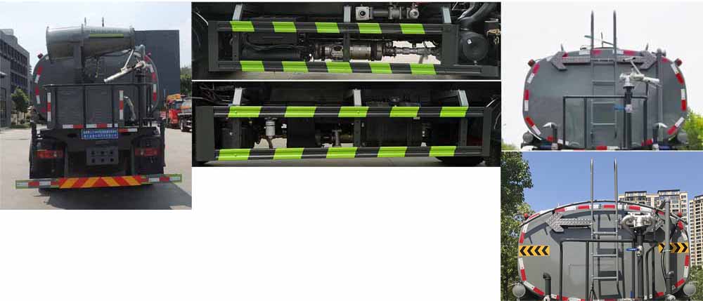 罐體總容量:9.77立方米,罐體有效容積:9.3立方米;罐體外形尺寸(長×長軸×短軸)(mm):4200×2300×1450,4000×2300×1540;ABS型號/生產廠家:3631010-C2000/東科克諾爾商用車制動系統(tǒng)(十堰)有限公司,ABS 8/東科克諾爾商用車制動系統(tǒng)(十堰)有限公司,4460046450/威伯科汽車控制系統(tǒng)(中國)有限公司,J ABS/焦作博瑞克控制技術有限公司.隨底盤選裝駕駛室,選裝底盤附件位置,選裝噴霧裝置樣式;所用材料材質、連接方式以及后部防護裝置的主要尺寸參數(shù)(斷面尺寸和離地高度):側、后防護材料均為:Q235碳鋼,連接方式均為:螺栓連接,后部防護截面尺寸(mm):120×50,后部防護離地高度(mm):450;專用功能及裝置:該車主要用于城鄉(xiāng)園林綠化噴灑;主要裝置為水罐及噴灑裝置;選裝油箱和消聲器的安裝位置.選裝儲氣筒位置.選裝后部箭頭燈。 |