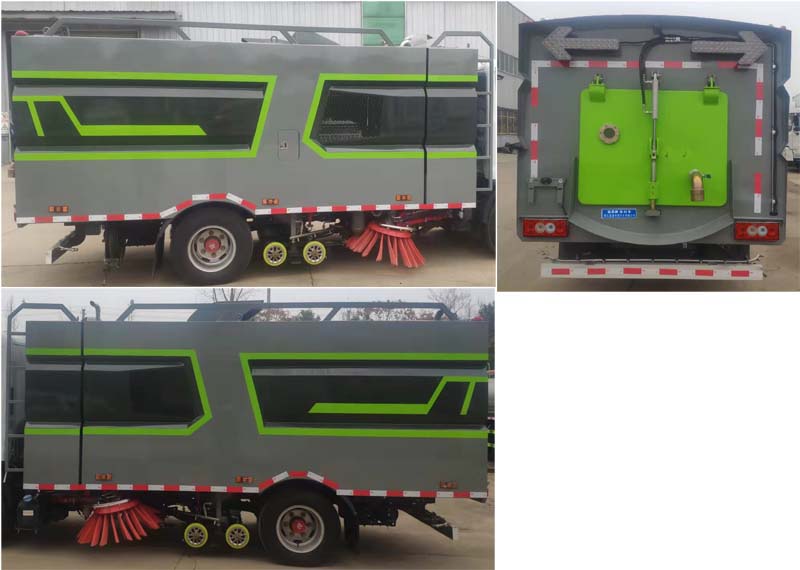 該車(chē)主要作用于路面的清掃作業(yè);專(zhuān)用裝置為洗掃裝置、垃圾箱。隨底盤(pán)選裝駕駛室;側(cè)防護(hù)為專(zhuān)用裝置代替,后防護(hù)材料為:Q235碳鋼,連接方式為:螺栓連接,后部防護(hù)截面尺寸(mm):120×50,后部防護(hù)離地高度(mm):350;ABS系統(tǒng)控制器型號(hào)為CM4XL-4S/4M,ABS系統(tǒng)控制器生產(chǎn)企業(yè)為廣州瑞立科密汽車(chē)電子股份有限公司.選裝左右及后部樣式。