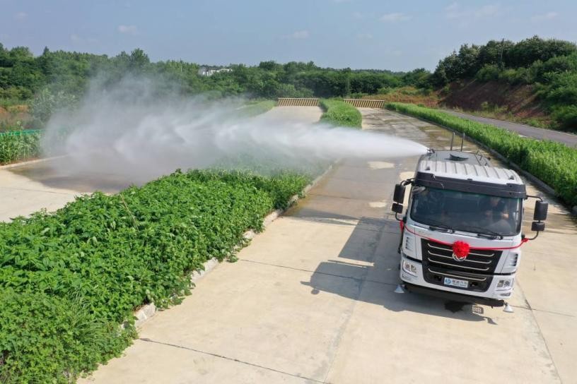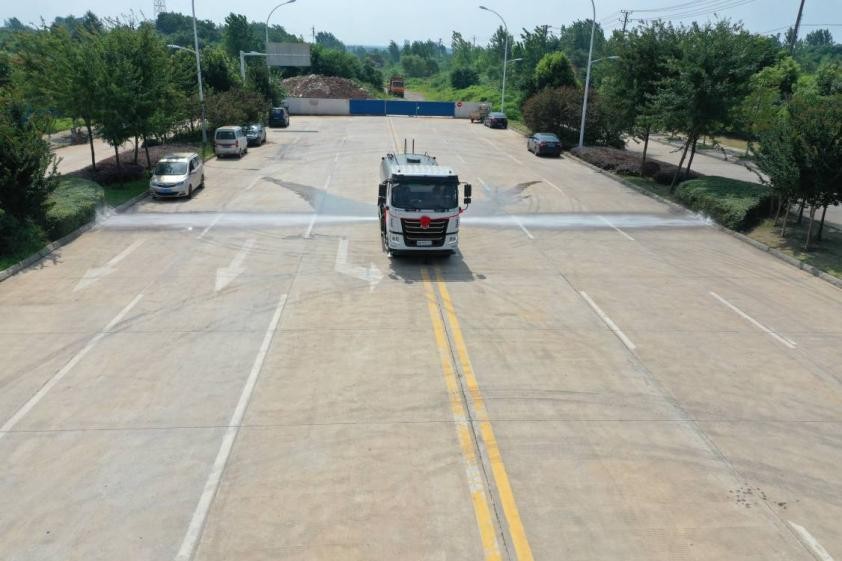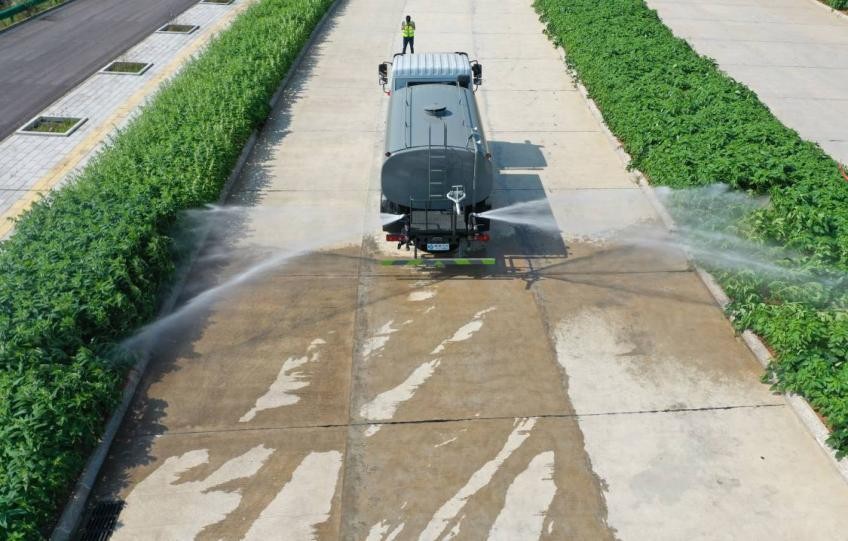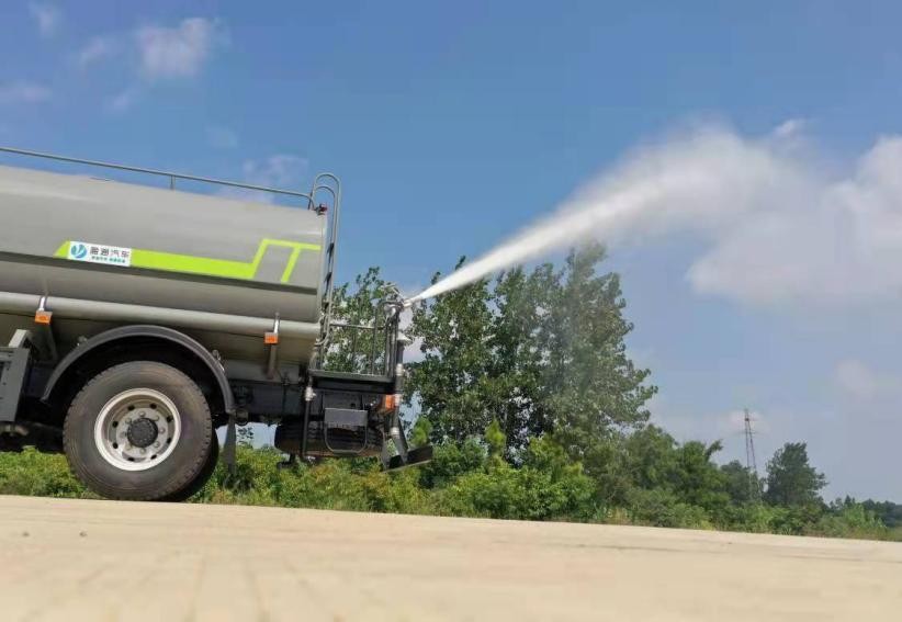 我公司產(chǎn)品標(biāo)配前噴(鴨嘴)、后沖、后灑、側(cè)噴、后置式工作平臺(tái),平臺(tái)上配置綠化水炮(可 360°旋轉(zhuǎn),既可以調(diào)成柱狀,也可以調(diào)成霧狀,更可以調(diào)成直沖狀、大雨、中雨、小雨、毛毛雨),配備優(yōu)質(zhì)大功率專用灑水泵(可自吸自排,可從河里或池塘抽水到罐體),取力器,雜物過(guò)濾網(wǎng),消防接口,自流球閥系統(tǒng)、取力器、球閥、濾網(wǎng)均為國(guó)家標(biāo)準(zhǔn)產(chǎn)品,主管道加粗,法蘭墊、法蘭盤(pán)加厚,大通徑球閥。整體具備性能優(yōu)良安全可靠、效率高、流量大、維修方便等特點(diǎn)。