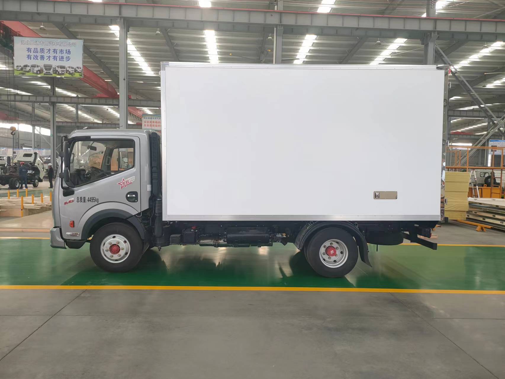 采用國際最先進的1200噸真空吸附一體成型制造。通用三明治斷橋隔熱工藝,是由鍍鋅管龍骨架加上中間8CM保溫環保材質擠塑板填充、防水木板用螺絲連接,外壁板選用國內優質的機制1.8mm厚度玻璃鋼,內壁選用1.2mm厚度熱縮板,廂體厚度80mm,門框厚度80mm,底板上面整體鋪鋁花紋板,高強度粘合劑,箱體真空吸附8小時以上,確保箱體一次成型,杜絕箱體起包,脫膠。廂體周邊3mm加厚型鋁合金包邊,不銹鋼包角,304不銹鋼門鎖,不銹鋼一體式門框,加大型防碰撞膠皮,廂內LED節能照明燈。可選-5°至-18°制冷機組.凱普特星云冷藏車,國六藍牌4.2米冷藏車,藍牌18方冷藏車,藍牌分體式冷藏車,4.2米藍牌冷藏車