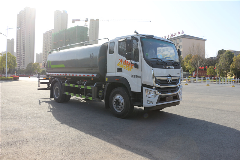 大黃蜂40霧炮車_福田奧鈴多功能抑塵車_奧鈴40米霧炮車_湖北盈通專用汽車有限公司,該車用途為抑塵降霾.主要裝置為罐體及噴霧裝置;罐體有效容積:15立方米;罐體外形尺寸(×長軸×短軸)(mm):4800×2450×1600;側、后防護材料均為:Q235碳鋼,連接方式均為:螺栓連接,后部防護截面尺寸(mm):120×50,后部防護離地高度(mm):480;ABS系統型號:ABS-VI.E;生產企業:廣州瑞立科密汽車電子股份有限公司.ABS系統型號:ABS-E;生產企業:威伯科汽車控制系統(中國)有限公司.選裝噴霧裝置樣式。采用4500mm軸距。