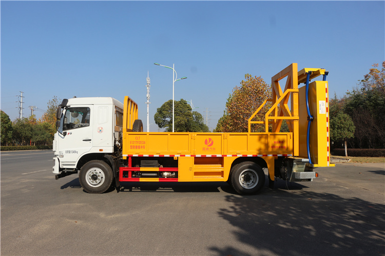 上裝配置:護箱:采用Q235國標邊3mm底板花紋板4mm厚,箱體后部防撞包采用美國進口T90型號,防撞緩沖吸能模塊主要由車載防撞緩沖墊和導向標志架組成,充當施工作業(yè)車輛后方的緩沖衛(wèi)士。如若發(fā)生追尾事故,能夠在肇事車輛和前方施工作業(yè)區(qū)域之間構建一個緩沖區(qū)域,通過機具結構變形吸收撞擊的能量,最大限度地降低被保護人員及設備遭到碰撞的幾率。高性能液壓系統(tǒng),可實現(xiàn)快速舉升和落下操作,方便設備運輸轉(zhuǎn)場,一鍵啟動功能,舉升和落下防撞裝置,當防撞裝置未完全落下到工作位置或舉升到垂直運輸位置時,會有自動警告音提示。